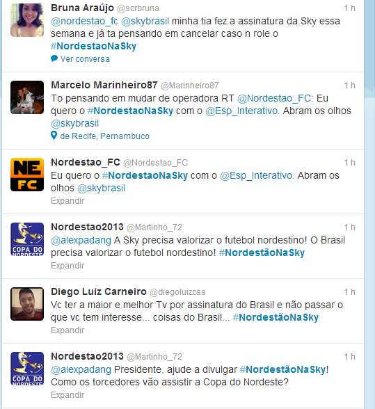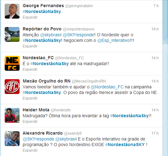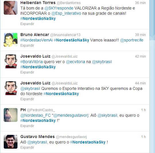 No Twitter não foi diferente. A hashtag #NordestãoNaSky chegou a entrar para os Trending Topics nacionais e permaneceu entre os assuntos mais comentandos durante cerca de 30 minutos. O #Minha Operadora inclusive separou alguns desses tweets para você: