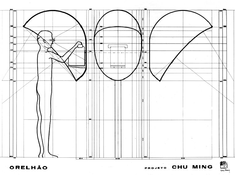 O formato característico do “orelhão” foi desenhado pela arquiteta sino-brasileira Chu Ming Silveira. A inspiração do projeto bem-sucedido foi o formato do ovo, que possuía, segundo ela, “a melhor forma acústica”.