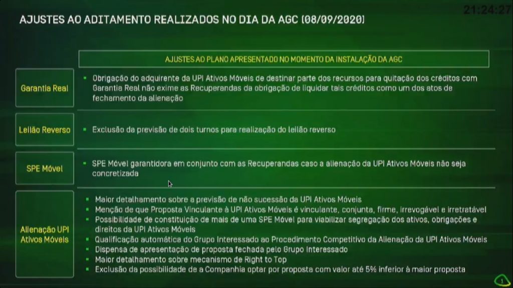 Iniciada às 11h00 da manhã desta terça-feira, com uma ampla defesa do novo plano de aditamento ao plano de recuperação judicial da companhia, por Rodrigo Abreu, a AGC prosseguiu com o sorteio para o direito de fala dos credores.