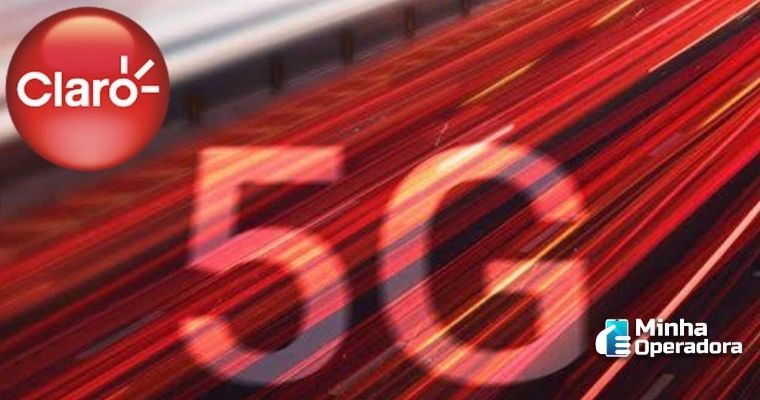 Logotipo da Claro em uma pista com o símbolo do 5G.