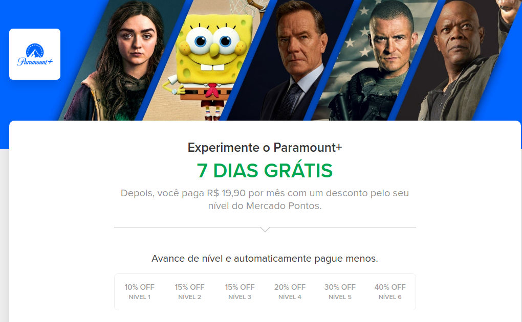 Quanto maior o nível do usuário no programa de fidelidade do Mercado Livre, maior é o desconto no preço de assinatura do Paramount+.