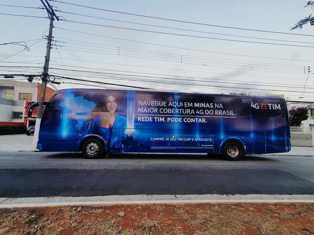 Para reforçar o compromisso, a TIM adesivou um ônibus que vai percorrer dezenas de cidades, onde colaboradores da operadora vão explicar aos moradores os benefícios da tecnologia do 4G.