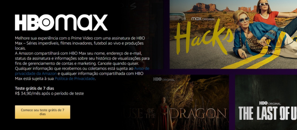 Valores e maiores detalhes do HBO Max dentro do Prime Video