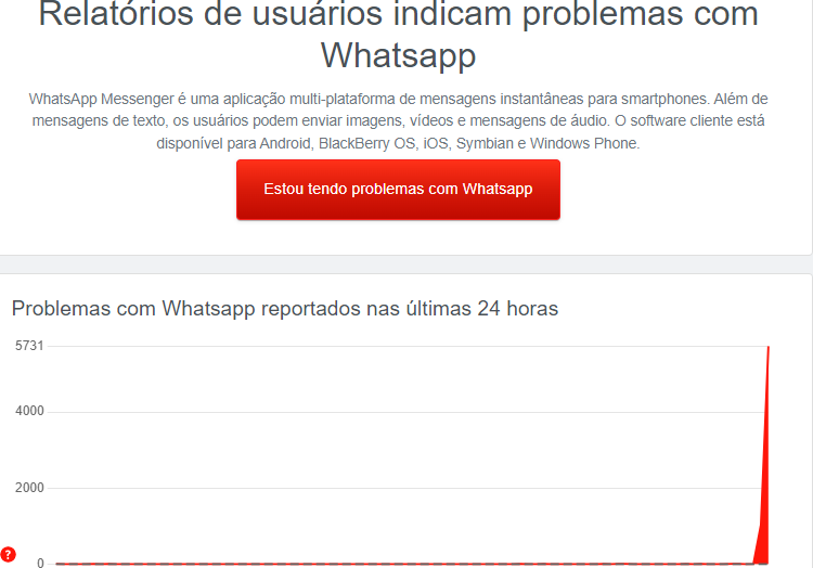 O WhatsApp não está fazendo envio de nenhuma mídia, porém o a troca de mensagens instantaneas via texto está sendo feita normalmente, até o momento, sem apresentar nenhuma outra falha.