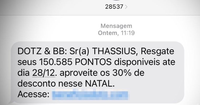 Cuidado com SMS fraudulentos envolvendo programas de pontos como Dotz e Banco do Brasil. Recentemente, muitas pessoas receberam mensagens falsas sobre o resgate de pontos, indicando um golpe.