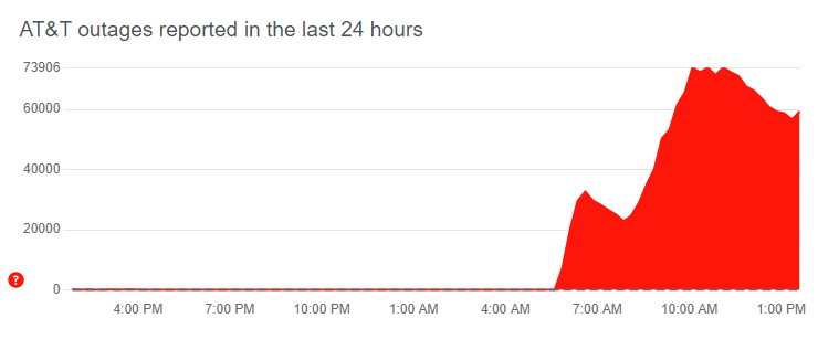 Segundo a CNN e Downdetector, site que mostra relato de falhas com serviços digitais e operadoras de telecomunicações, a AT&T está passando por grande instabilidade. Veja o gráfico abaixo: