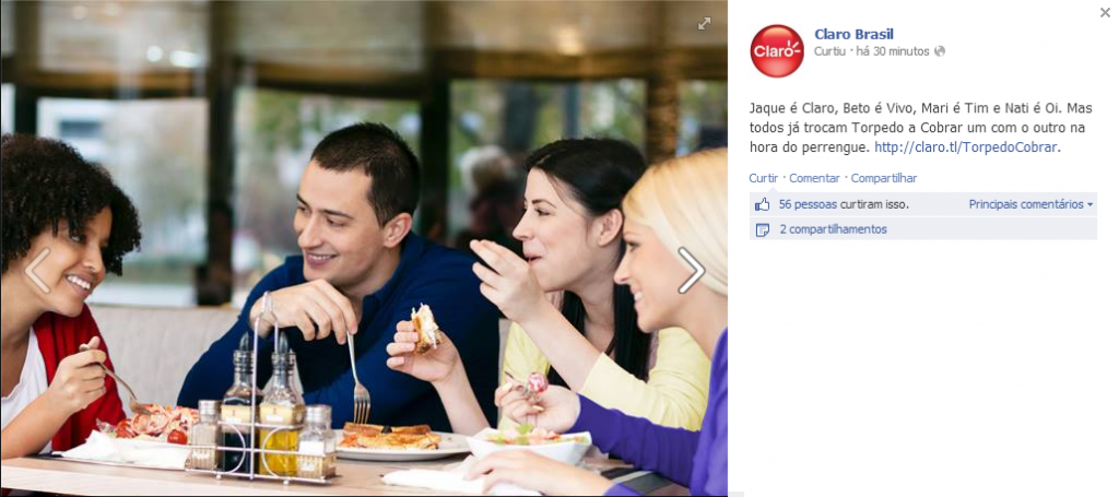 Pela primeira vez uma operadora de telefonia utilizou sua página numa rede social para citar o nome de alguma empresa da concorrência. No inicio da noite desta terça-feira (27) a Claro publicou a imagem acima em sua página no Facebook (clique na imagem para ampliar), intrigando diversos usuários sobre o feito.