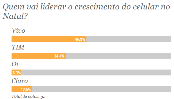 O resultado da enquete da semana passada já está disponível. Os leitores do Minha Operadora confiam que a Vivo vá se dar bem nas vendas do mês de dezembro e atrair mais clientes da sua base. Confira no gráfico abaixo o resultado completo: