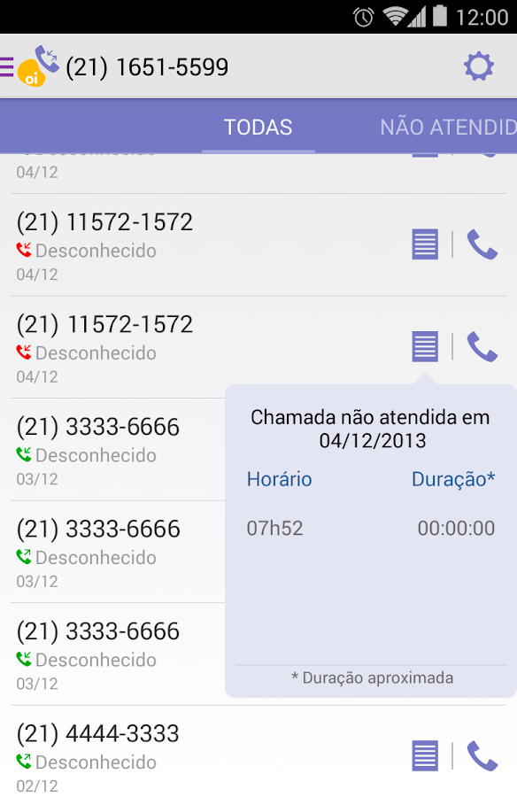 Como garantia da segurança das informações, o cliente deve acessar o aplicativo Oi Ligou para telefone fixo, utilizando o mesmo login e a senha do serviço Minha Oi. Na tela principal do aplicativo, o cliente pode ver a lista dos números Oi Fixo cadastrados em seu CPF. Basta clicar no número desejado e visualizar o histórico das chamadas, onde podem ser acompanhadas todas as informações detalhadamente. Caso o cliente ainda não tenha acesso ao Minha Oi, o cadastro está disponível no site www.oi.com.br/minhaoi.