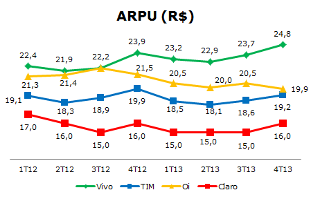 | ARPU (R$) | 1T12 | 2T12 | 3T12 | 4T12 | 1T13 | 2T13 | 3T13 | 4T13 |