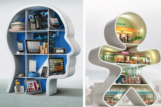 Os anúncios são ilustrados por imagens de uma cabeça humana (no caso da TIM) e um boneco estilizado (no caso da Vivo, de contorno idêntico ao logotipo da empresa). Em ambas, as imagens estão divididas em escaninhos onde são alocados aparelhos de comunicação e objetos próprios de escritórios e oficinas. Para a TIM, a semelhança visual entre as peças é proposital e merece reprovação pelo Conselho de Ética.