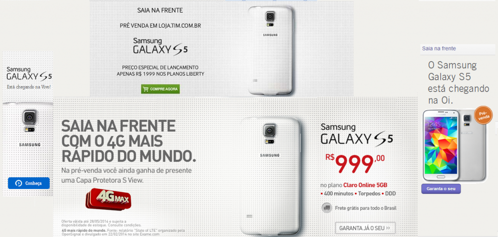 O novíssimo e tão esperado smartphone Galaxy S5 mal foi lançado no mundo e já está desembarcando no Brasil. Logicamente, as operadoras com atuação em nosso país já estão começando a abrir os seus formulários de cadastros para os interessados receberem informações sobre o aparelho da fabricante Samsung – líder em vendas de smartphones em todo o planeta. Oficialmente, o Samsung Galaxy S5 deve ser lançado por aqui no dia 12 de abril.