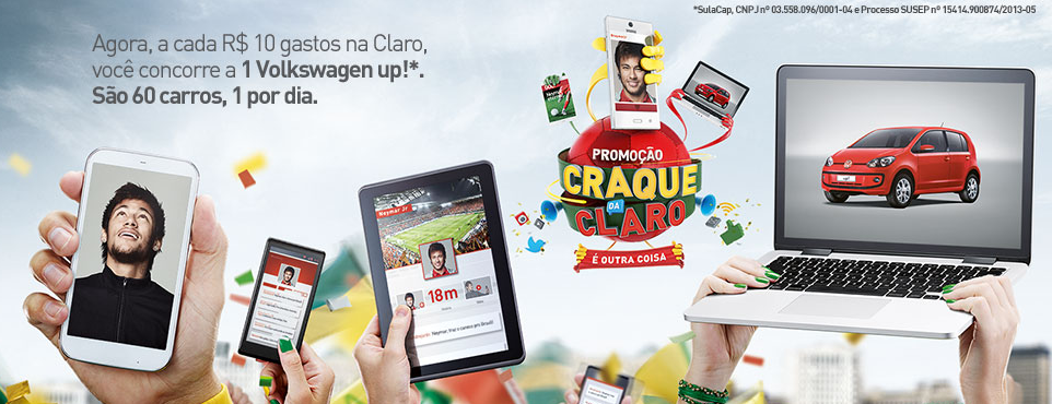 Para tentar diminuir o impacto dessa perda de usuários para a concorrência e aproveitando o período de aquecimento para a Copa do Mundo, a Claro vai dar mais uma investida em promoções. A operadora do grupo América Móvil lançou a promoção “Craque da Claro é Outra Coisa” está oferecendo cupons para o sorteio de sessenta (60) carros zero km da marca Volkswagen, modelo ‘Up!’ para cada R$ 10 gastos em serviços da operadora ou quando recarregar o celular.