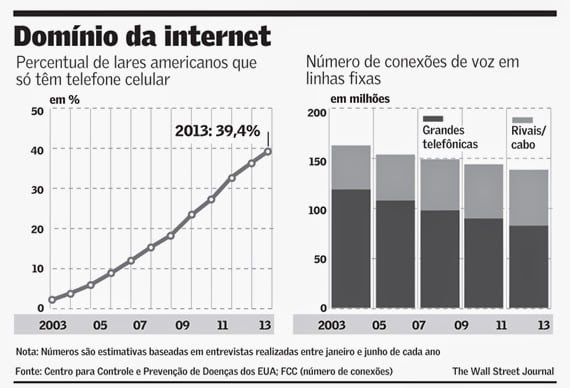 Quase 40% dos lares americanos hoje não têm telefones fixos e há no país mais telefones celulares do que habitantes. “A revolução está ao nosso redor”, diz Thomas E. Wheeler, presidente do conselho da Comissão Federal de Comunicações, ou FCC, na sigla em inglês. Uma rede toda baseada em internet pode levar a produtos melhores, preços menores e “enormes benefícios” para os consumidores, segundo ele.