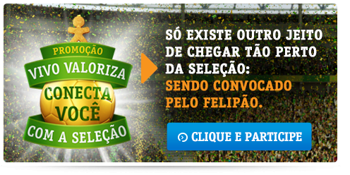 Trata-se da promoção “Vivo Valoriza conecta você com a Seleção”, em vigor até o dia 15 de maio de 2014. Para participar é simples: basta o cliente acessar o site e clicar em “Participe da Promoção”. Automaticamente, ele será direcionado para realizar o login no site do programa de relacionamento Vivo Valoriza e confirmar os dados para participação.