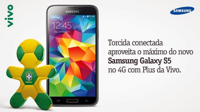 O recém lançado Samsung Galaxy S5, foi anunciado nesta sexta-feira (30) como o smartphone oficial da Seleção Brasileira em uma ação irreverente entre Samsung e Vivo. Os membros da Seleção, que está concentrada na Granja Comary, receberão o smartphone customizado e equipado com um chip da Vivo, além de um Game Pad, novo joystick da Samsung, que transforma o aparelho em um verdadeiro console portátil de jogos.