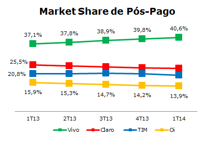 | Pós-pago | 1T13 | 2T13 | 3T13 | 4T13 | 1T14 |