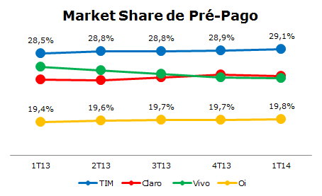 | Pré-pago | 1T13 | 2T13 | 3T13 | 4T13 | 1T14 |