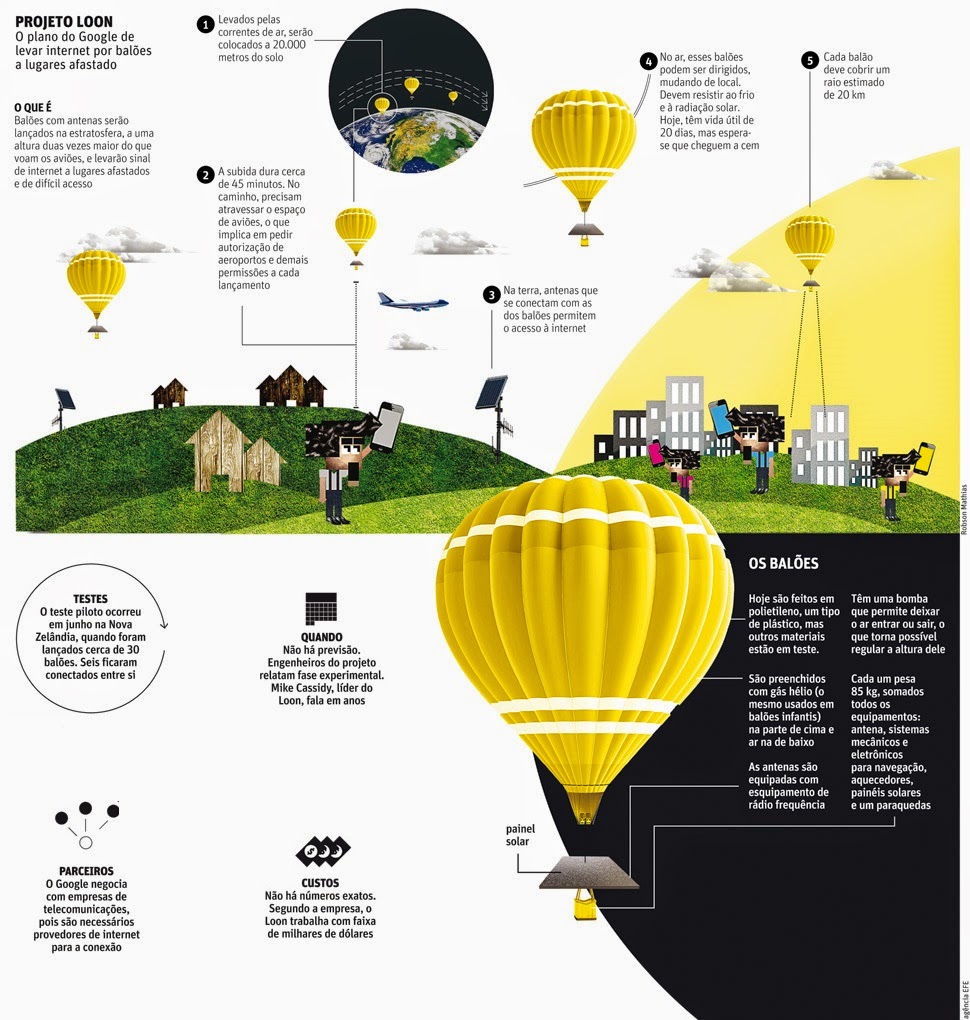 O projeto do Google de levar internet a áreas remotas usando balões, o Loon, escolheu o Brasil para seu terceiro teste mundial conhecido, o primeiro usando a tecnologia 4G. Foram lançados nesta sexta-feira (06) cinco balões (cada um com 15 metros de diâmetro) a 18 km de Teresina, no povoado Cacimba Velha, zona Leste da cidade.