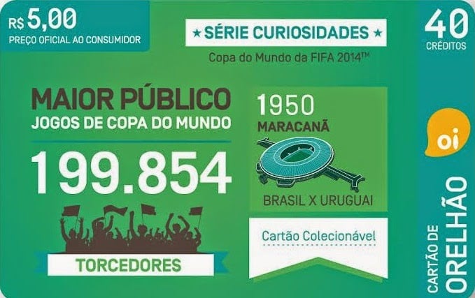 A Oi lançou uma central de curiosidades sobre diversas edições da Copa do Mundo. Durante o período dos jogos no Brasil, todos os orelhões da companhia terão acesso gratuito a um número que disponibilizará mensagens em português e em inglês com números sobre os jogos, situações inusitadas e informações históricas sobre as mundiais. Ao ligar para a central, o torcedor poderá descobrir, por exemplo, que o jogador Leônidas fez um gol descalço contra a Polônia na Copa de 1938, na França, e que o capitão da Copa de 70, Carlos Alberto Torres, foi o primeiro a beijar a taça. A ação faz parte da estratégia da companhia de buscar dar novas utilidades aos telefones públicos, adequando-os para atender as necessidades dos clientes.