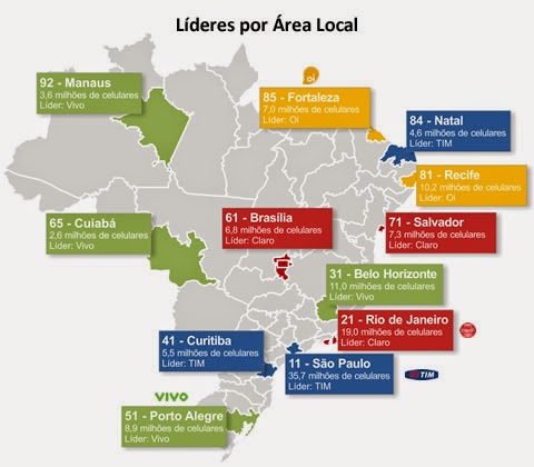 Neste período a Vivo perdeu a liderança em São Paulo (11) para a TIM e a Oi de Salvador (71) para a Claro.