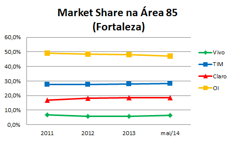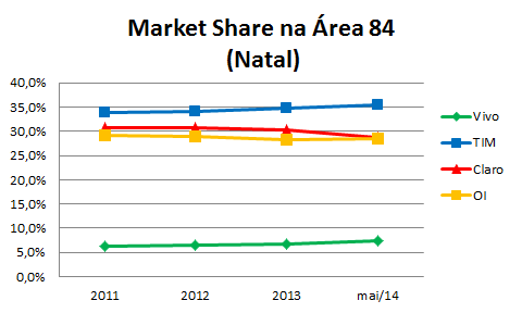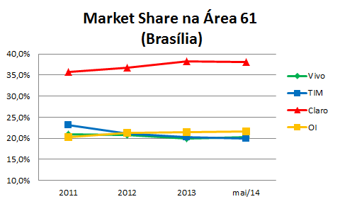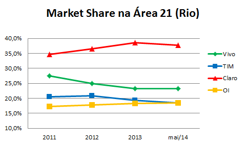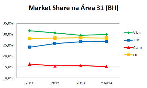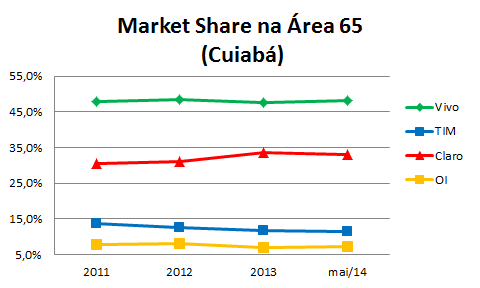 Em maio de 2014 a Claro liderava o pré-pago com 39,1% de market share. Vivo (34,7%) e Claro (34,5%) disputavam a liderança no pós-pago.