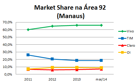 Passados mais de dois anos, em maio de 2014 a Vivo era a líder em market share na área local (DDD) de quatro das doze cidades sede, TIM e Claro em três e a Oi em duas.