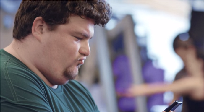 O comercial exibe usuários de dispositivos móveis que não conseguem acesso à internet, como um homem levantando peso e uma garota na academia fazendo um biquinho ao olhar para o celular.