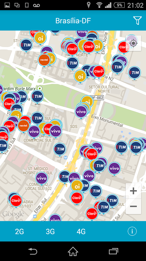 | É possível localizar as torres de cada operadora de telefonia instaladas próximas a você. |