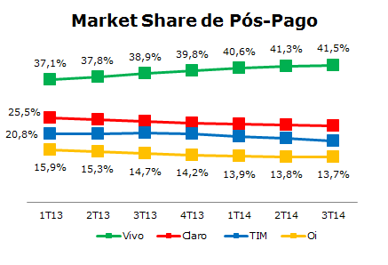 | Pós-pago | 1T13 | 2T13 | 3T13 | 4T13 | 1T14 | 2T14 | 3T14 |