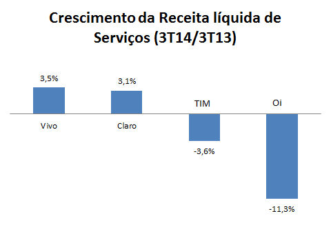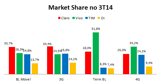 A Claro ganhou market share no 3T14 e as demais perderam.