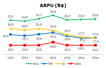 | ARPU (R$) | 4T12 | 1T13 | 2T13 | 3T13 | 4T13 | 1T14 | 2T14 | 3T14 |