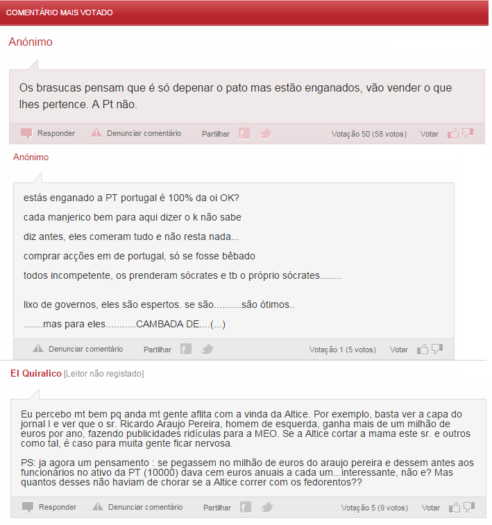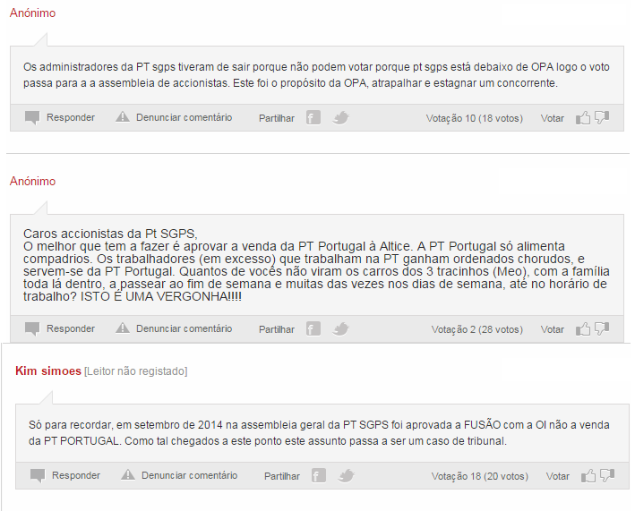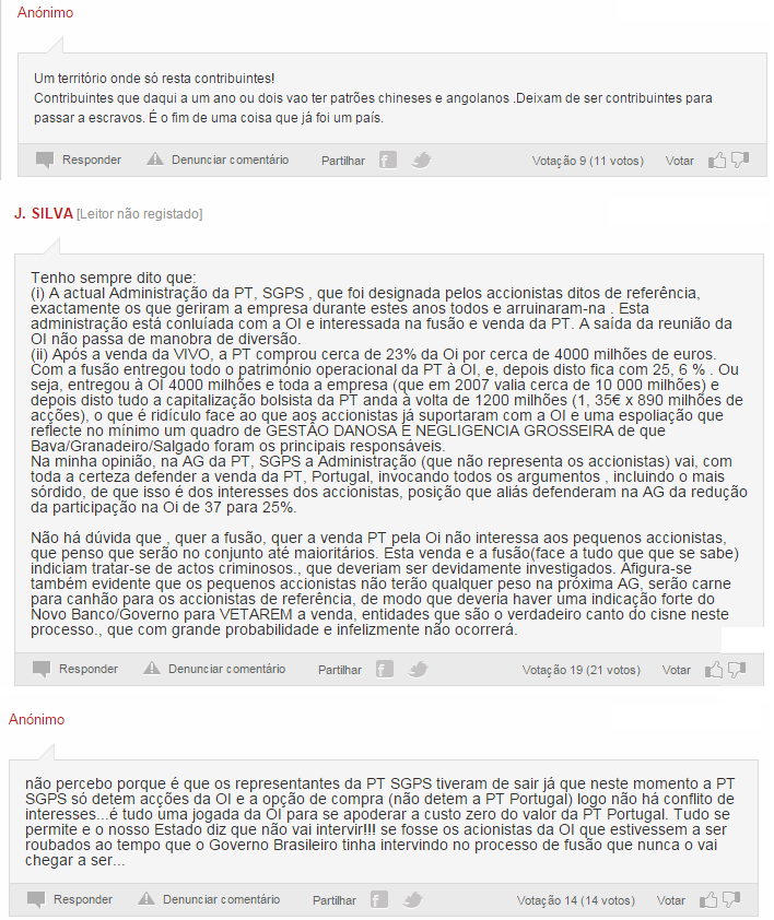 Nos meios de comunicação portugueses, a decisão da Oi já está sendo motivo de comentários: