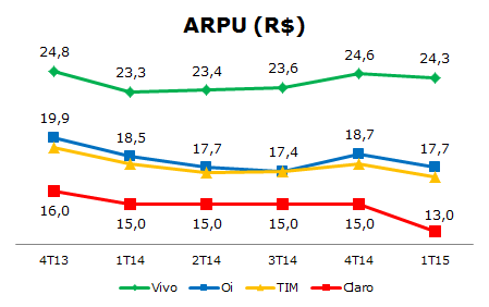 | ARPU (R$) | 4T13 | 1T14 | 2T14 | 3T14 | 4T14 | 1T15 |