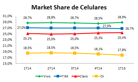 Vivo e Claro ganharam market share no 1T15, TIM e Oi perderam.