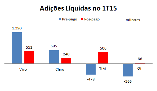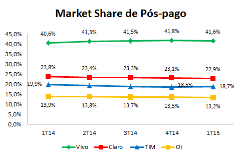 | Pós-pago | 1T14 | 2T14 | 3T14 | 4T14 | 1T15 |