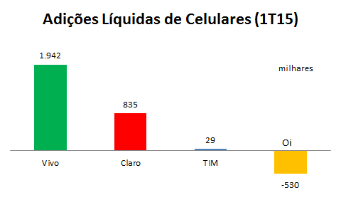 A Vivo liderou o crescimento no 1T15 com mais que o dobro de adições líquidas da segunda colocada (Claro).