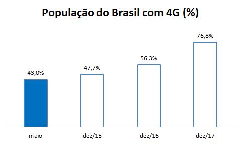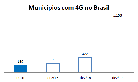 A tecnologia de quarta geração (4G) estava presente em 159 cidades brasileiras em maio de 2015. Entre estes municípios estavam todas as capitais de estado, cidades com mais de 500 mil habitantes e outros municípios de interesse das operadoras.