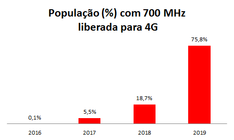 Pelo cronograma atual as frequências de 700 MHz estarão disponíveis em 1 município em 2016, 52 em 2017 e 197 em 2018. No restante dos municípios, correspondentes a 75,8% da população, estas frequências só estarão disponíveis em 2019.
