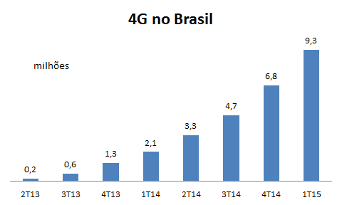 A adoção da 4G no Brasil está sendo mais rápida que a tecnologia 3G (de terceira geração). O preço dos smartphones 4G está caindo e o Brasil deve terminar 2015 com cerca de 18 milhões de celulares 4G.