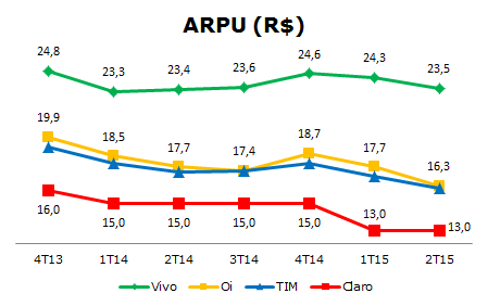 | ARPU (R$) | 4T13 | 1T14 | 2T14 | 3T14 | 4T14 | 1T15 | 2T15 |