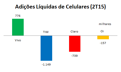 A Vivo liderou o crescimento no 2T15 com quase o triplo de adições líquidas da segunda colocada (Nextel).