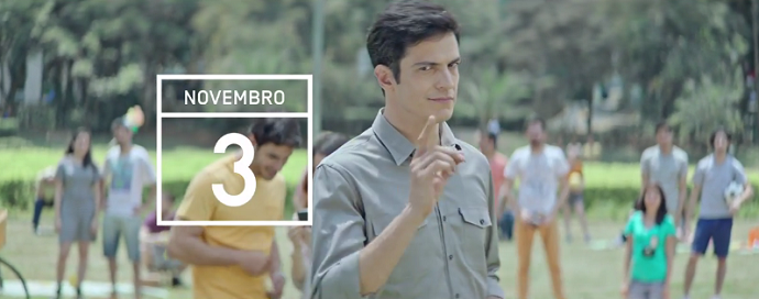 O informe publicitário é encerrado com Mateus Solano anunciando: “A Oi não acha isso nada lindo. Por isso vai mudar o seu jeito de se comunicar. Dia 3 de novembro. Aguarde!”.