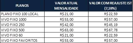 Quem tem algum plano Vivo Fixo fora de São Paulo também vai sentir o bolso pesar um pouco mais. De acordo com o pacote de minutos escolhido, o usuário vai pagar até R$ 4,78 adicionais por mês.