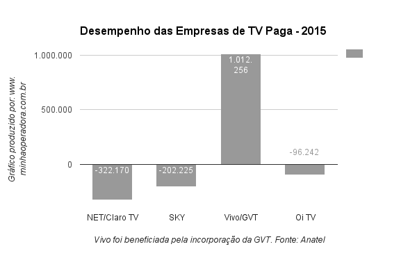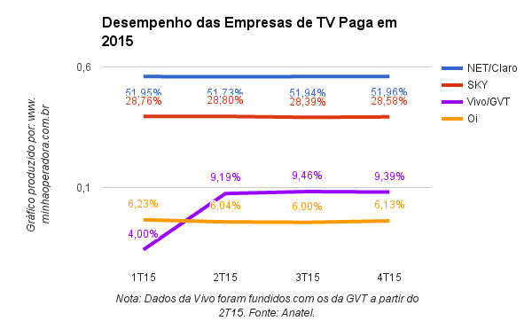 No acumulado do ano de 2015 temos o grupo Telefônica Brasil (controlador de Vivo e GVT) como o que mais obteve sucesso no setor de televisão por assinatura do país. Graças a sua fusão com a GVT, a Vivo recebeu 1.012.256 clientes nos últimos 12 meses.