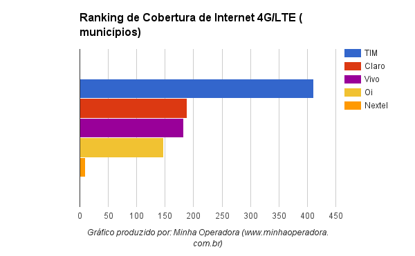 Apesar de ter a liderança absoluta em cobertura de rede 3G, a Vivo perdeu a sua majestade no que se refere a instalação da 4G. A TIM é quem possui a cobertura majoritária da tecnologia no Brasil, com 411 municípios cobertos, seguida pela Claro (189 municípios), Vivo (183), Oi (147) e Nextel (10).
