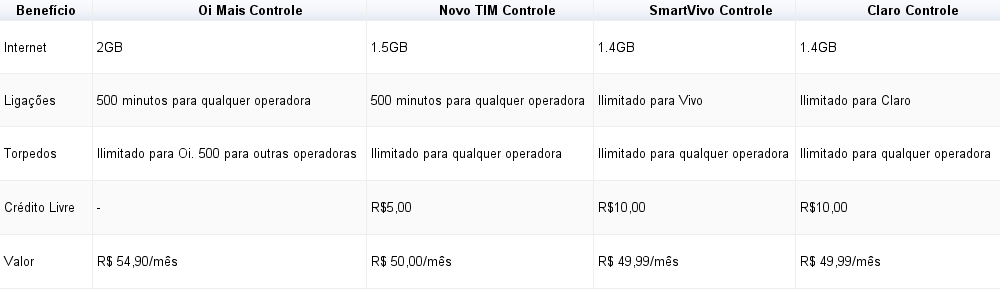 Vivo e Claro oferecem, pelo mesmo preço da TIM, 400MB a mais de internet, totalizando 1,4GB de franquia. Já a Oi é disparada a operadora com a maior capacidade de dados, oferecendo 2GB (até então o dobro da TIM), por apenas R$ 5 mais caro.