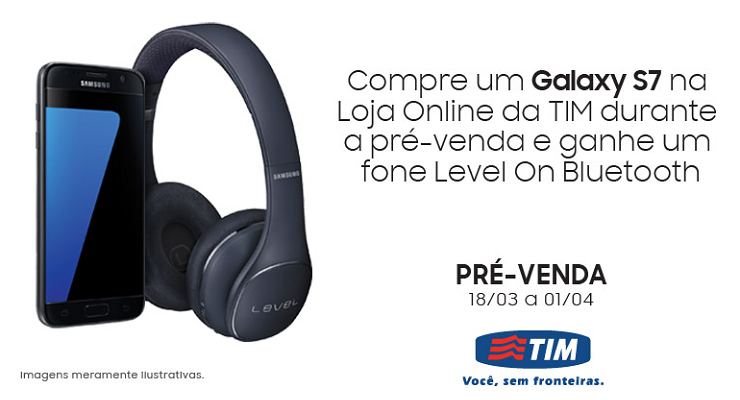 Tem também distribuição de um fone de ouvido no valor de R$ 1.199 para quem comprar um dos novos Galaxys. A campanha é da TIM. Trata-se do fone de ouvido sem fio “Samsung Level On Wirelles”.