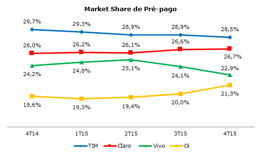Market Share de Pré-Pago: TIM lidera