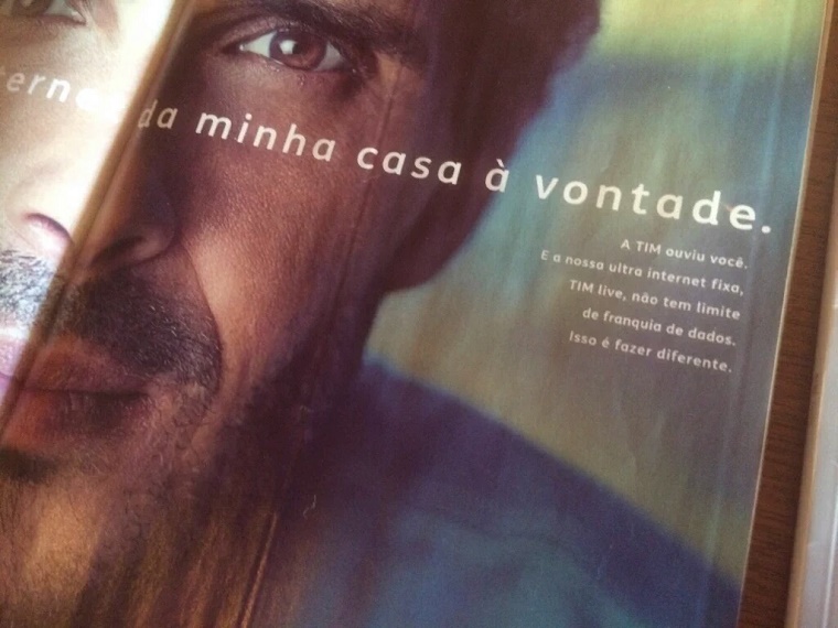 Não parou por aí. A operadora comprou espaço na mídia impressa presente na área em que atua. “A TIM ouviu você. E a nossa ultra internet fixa, TIM Live, não tem limite de franquia de dados. Isso é fazer diferente”, alfineta à concorrência o anúncio.
